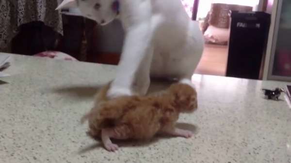 Yavrularına Bir Şeyler Anlatmaya Çalışan Anne Kedi